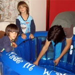 The boys helped daddy to set up the pool and checked the water temperature, it took just 20 minutes for the pool to be ready and by 7pm I was in. Not suffering anymore pain in my pelvis thanks to the buoyancy effect, I could now concentrate on the contractions; breathing and choosing whatever position felt comfortable. The boys kept busy by covering the house with extra absorbent pamper mat and then sat very calmly next to the pool, watching carefully through the transparent wall as they did not want to miss the baby coming out. Eventually, 1h30 later, they got bored and decided to go to bed asking to be wake up when the baby would be here. I was feeling so relaxed myself that it was difficult to believe that I was in active labour. Finally I decided to get out of the pool to get things moving. Well only 10 minutes out of the pool, and I was screaming to be helped back into it. The contractions were following odd patterns very close for few minutes and then space out and again close. Although the pain was really sharp it never last for long and I found this labour to be the easiest of all four!