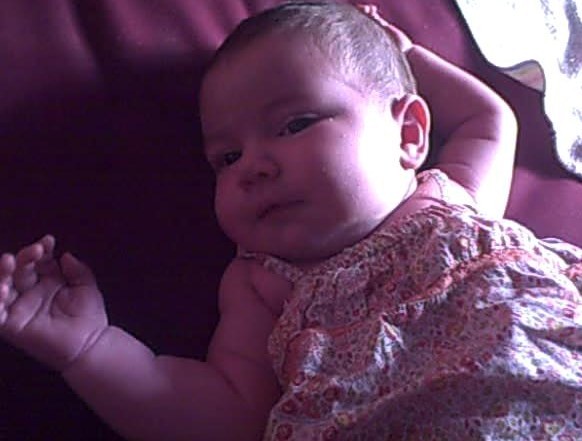 And right now the only thing that really captures her attention (besides me, and her food source!), because she is sooo young (although she is very alert!) ~ is a sweater that used to be Bodhi’s. She recognizes it as one of her belongings. There are many items on our fireplace mantel, but she only looks at His sweater. She looks at it and just smiles and smiles! She smiles at the ceiling fan too!